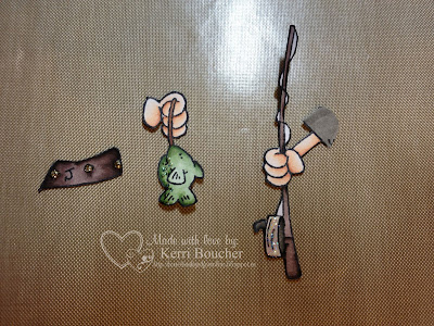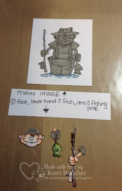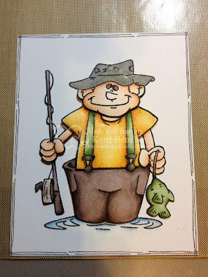 | Ok there are alot of pics and I hope that these instructions are clear..I love doing the 3D work but it takes time and patience...the image I used is called Dad's Catch its from the High Hopes Collection and can be found here as well as the Copics, Pencils, Memento Tuxedo Black Ink and the Lijm by Olba..ONE CRAZY STAMPER... Now lets get down to business..you must stamp multiple images...I show you five but I would stamp seven.. |