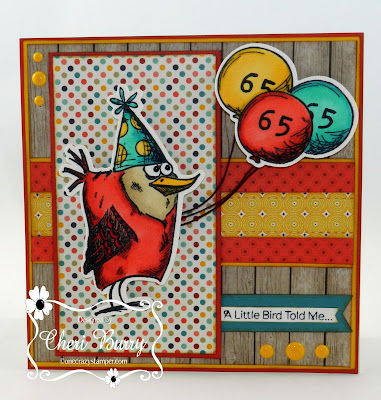 Supplies: Tim Holtz Bird Crazy stamp set, Tim Holtz Crazy Accessories, Copic Markers, Memento Tuxedo Black ink, YNS Apricot Gumdrops, XPress- It Blending Cardstock