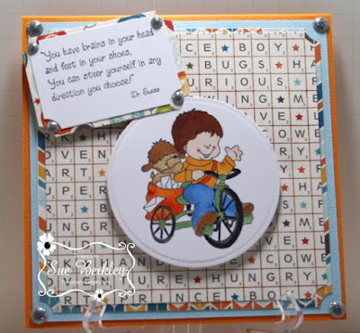 Supplies used: Biking Buddies, Any Direction You Choose (High Hopes Rubber Stamps), Ink: Tsukineko Memento Tuxedo Black, X-Press It Blending Cardstock, Copic Markers: E0000, E000, E00, R20, E23, E39, E11, E23, E39, B24, B23, Y38, Y35, YR04, YR07, E33, E35, E31, T6 No. 6, T8 No. 8, G24, N0 No. 00, YNS Gumdrops - Silver