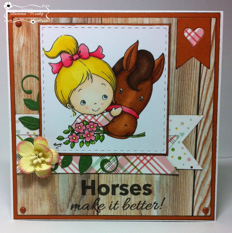 Supplies: Jessica With Horse (Your Next Stamp), Memento Tuxedo Black ink, Copic Xpress It cardstock, Walnut Stain Distress Ink, Stitched Squares Die Set, Love Me Some Latte Gumdrops