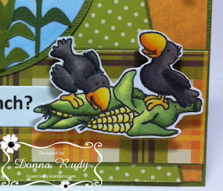 "Harvest Harry" from High Hopes Rubber Stamps sure seems happy about harvest being started. He is exhausted! Guarding crops is a tough job! I think he already has his bags packed for vacation!