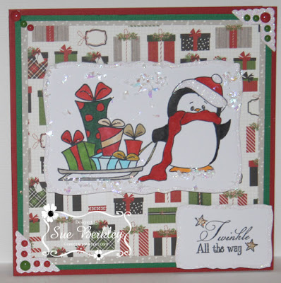 Tuesday has rolled around again and before we know it, Christmas will soon be here. For today's card, I have used the adorable Penguin Giver from High Hopes Rubber Stamps latest release called Fall/Winter Fun.